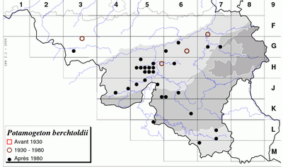 Etant donné les nombreuses confusions anciennes entre Potamogeton pusillus L. (= P. panormitanus Biv.) et P. pusillus auct. non L. (= Potamogeton berchtoldii Fieb.), le statut réel de ces deux espèces est insuffisamment documenté. Les recherches systématiques récentes ont permis de trouver de nombreuses localités nouvelles de cette espèce qui semble, sinon en extension, du moins plus courante que P. pusillus L.