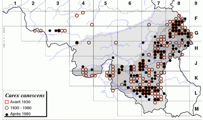 Districts campinien et ardennais, RR dans les districts flandrien, brabançon et mosan.