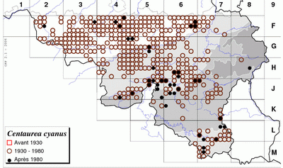 Espèce jadis très commune dans tous les districts sauf en Ardenne où elle était assez rare. Actuellement, en très forte régression dans les régions de grande culture (Hesbaye notamment). Encore bien présente en Calestienne il y a quelques années, elle semble y avoir reculé récemment. Rem. : l'espèce est semée (en principe au départ de semences issues de populations indigènes) dans les "bandes de messicoles" ; elle est également proposée à la vente en jardinerie (sans assurance quant à la provenance des semences) dans des mélanges pour parterres fleuris.