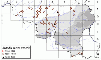 D'après LAWALREE et DELVOSALLE (1969), l'espèce était en voie de disparition en raison de la modification des pratiques culturales (tri des graines, utilisation de pesticides). Espèce en voie de disparition signalée seulement dans 2 stations après 1980.