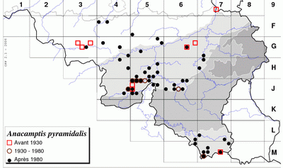 D'après LAWALREE et DELVOSALLE (1969), l'espèce était menacée par des plantations ou des prélèvements exagérés. L'espèce est capable de coloniser des sites neufs (anciennes carrières, dépôts) mais ne se maintient que si les conditions écologiques restent favorables. Elle est en extension et peut parfois former de très grandes populations (ex : Pont-de-Bonne, ancienne carrière - station détruite suite à la reprise de l'exploitation). Certaines populations sont cependant réduites à un ou quelques individus.