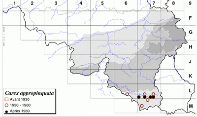 Espèce rare et en régression, uniquement notée dans les marais de la Haute Semois après 1980.
