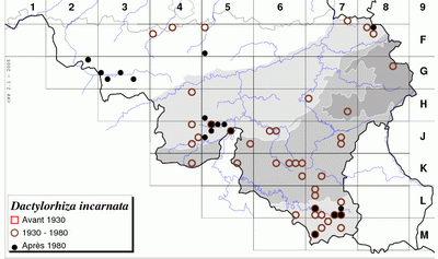 L' Atlas (VAN ROMPAEY et DELVOSALLE, 1979) renseigne une quarantaine de stations. Par rapport à cette époque, l'espèce apparaît en très forte régression, menacée par les altérations de ses biotopes. En outre, lorsqu'elle se développe en compagnie d'autres espèces, notamment Dactylorhiza majalis, elle s'hybride et finit par être "absorbée" par introgression (DELFORGE, 1998).