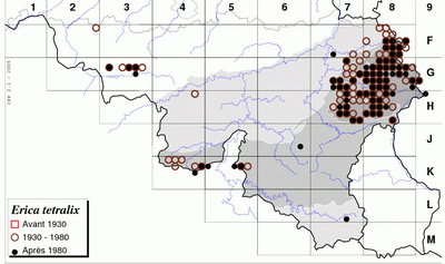 Districts brabançon et ardennais. Anciennement renseignée dans le district mosan (Jamioulx) et dans le district lorrain (Freylange).
