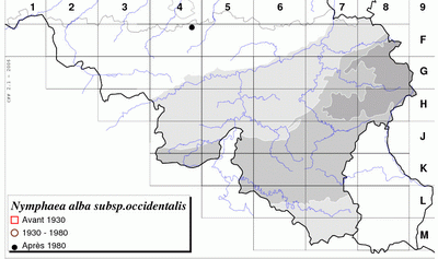 Espèce très rare dont l'indigénat est souvent douteux (parfois introduite) et d'identification difficile car il existe des possibilités de confusion avec des espèces introduites ou avec Nymphaea alba subsp. alba.