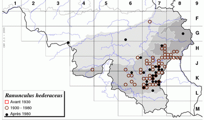 D'après LAWALREE et DELVOSALLE (1969), l'espèce, autrefois présente çà et là dans tout le pays, était devenue très rare au nord du sillon Sambre-Meuse, mais était encore relativement fréquente en Ardenne centrale. Sa régression résulte probablement des assèchements, mais peut-être aussi de l'eutrophisation des eaux. Actuellement, l'espèce n'est plus guère observée que dans la partie sud-est du district ardennais.