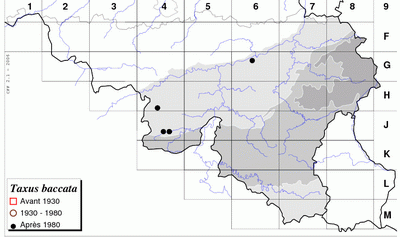 District mosan. L'if est considéré comme indigène en trois localités seulement : Lompret, Barbençon et Ben-Ahin (DUVIGNEAUD, 1965; GALOUX, 1979; SAINTENOY-SIMON, 1983). Ailleurs, il serait seulement naturalisé.