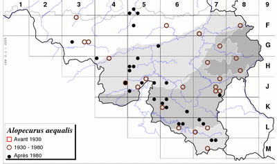 Espèce peut-être méconnue, parfois confondue avec Alopecurus geniculatus et probablement plus répandue que ne le laisse penser l'Atlas de VAN ROMPAEY et DELVOSALLE (1979).