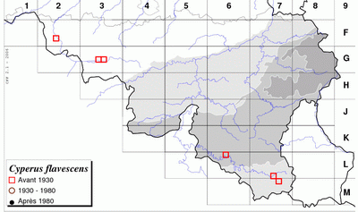 D'après le Prodrome (DURAND, 1899), l'espèce avait été découverte jadis à Vance et à Dohan. Egalement citée par les anciens auteurs à Ghlin et par POHL (1923) à Douvrain (ANRYS et al. 1991). Une station renseignée dans le mosan occidental par l'Atlas. D'après LAWALREE et DELVOSALLE (1969), l'espèce, autrefois très rare, avait disparu à la suite des assèchements et de l'eutrophisation.